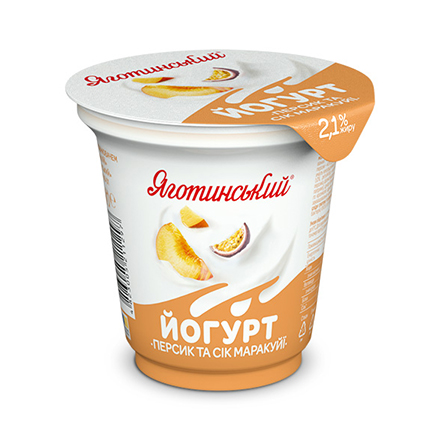 До йогурту ми додаємо наповнювач із солодкою соковитою м'якоттю персика, що багатий на клітковину. Унікальне поєднання його з соком маракуйї надає йогурту вишуканий смак і запах. Також наповнює продукт користю для споживачів — унікальними антиоксидантними властивостями, що надає вітамін С.