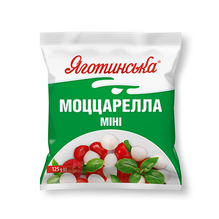 М’який сир «Моццарела» в розсолі від ТМ «Яготинська» має пластичну консистенцію та ніжний нейтральний смак, властивий класичній моццареллі. Продукт має вигляд кульок великого або малого розміру із білосніжною блискучою поверхнею та гладкою шкіркою.